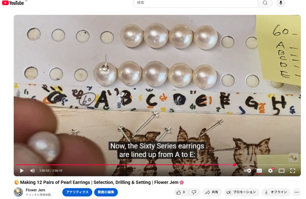 As an additional note: The making process of these 9 mm earrings from the Sixty Series is featured in the video below. Starting at 2:00:50 (2 hours and 50 seconds), you can see all the pearl earrings lined up together, allowing you to compare their quality and atmosphere. I hope you’ll enjoy watching it.