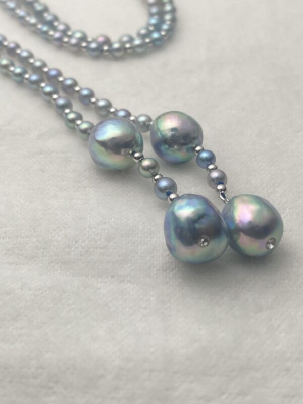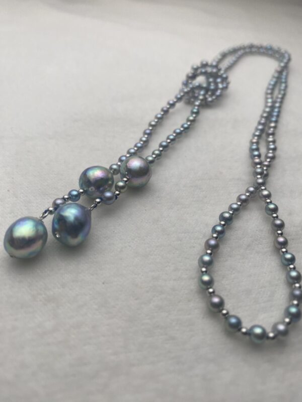Akoya blue pearls, approx. 4 mm and 9 mm.