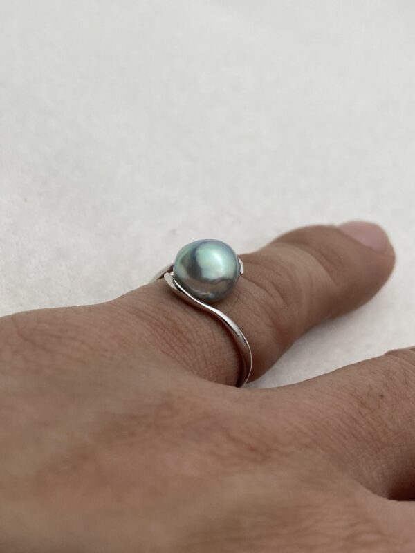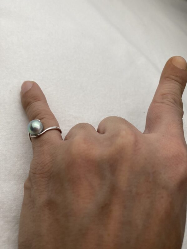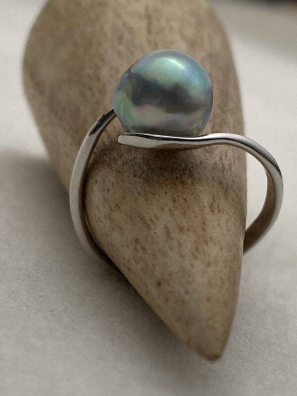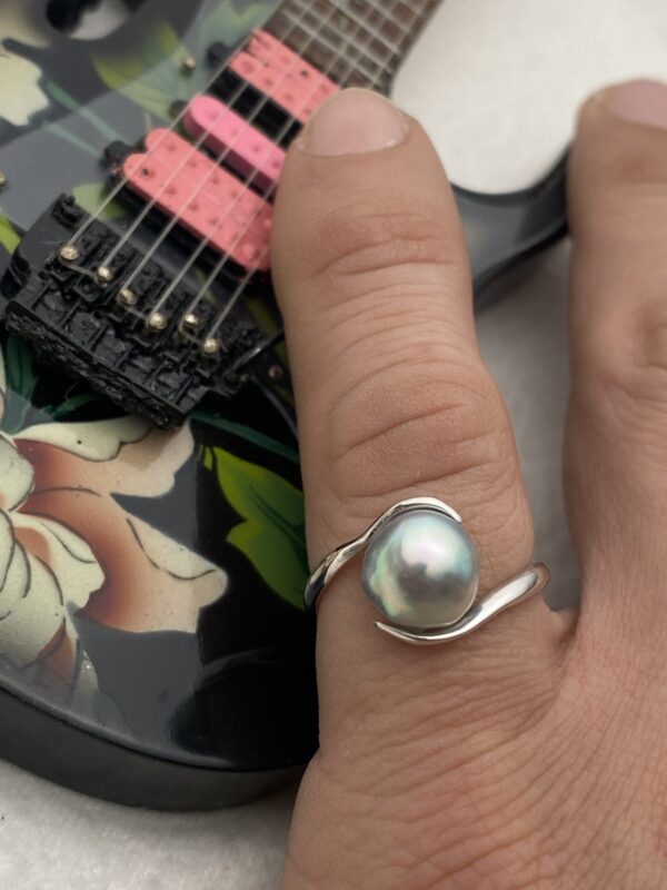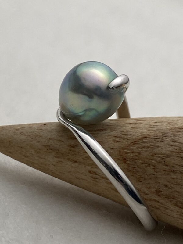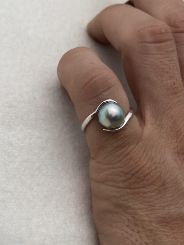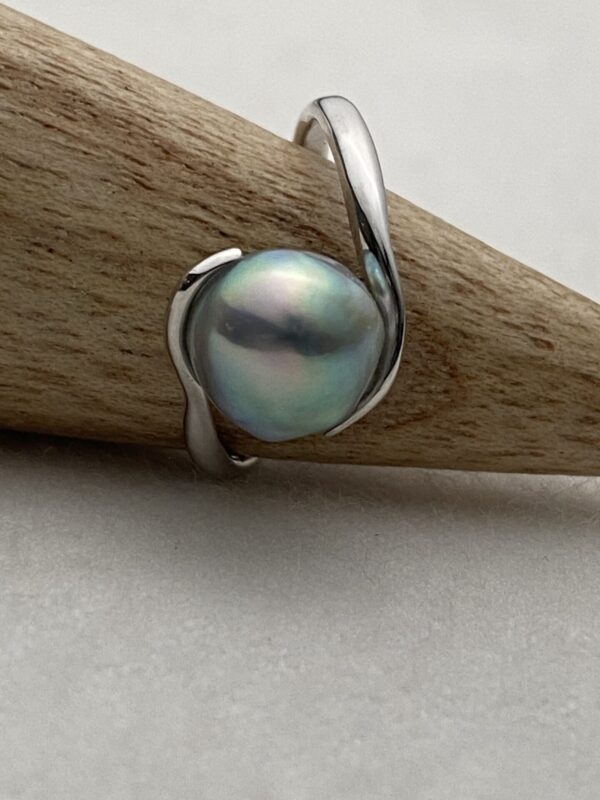 Akoya natural blue baroque pearl ring, approx. 8 mm.